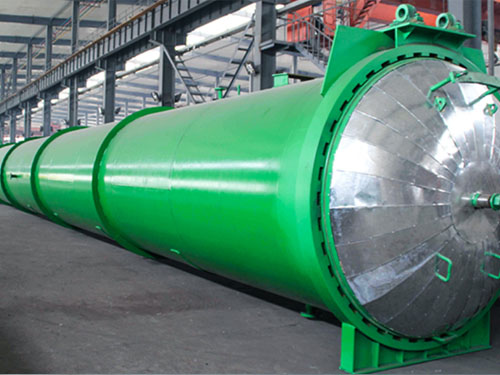 水泥蒸壓釜蒸壓釜是一種體積大、重量重的大型壓力容器。由釜體、釜蓋、法蘭、支座、閥門儀表及安全附件構(gòu)成,內(nèi)鋪設(shè)鋼軌、蒸汽分配管。蒸壓釜的工作壓力一般為1.3MPa和1.5MPa兩種。